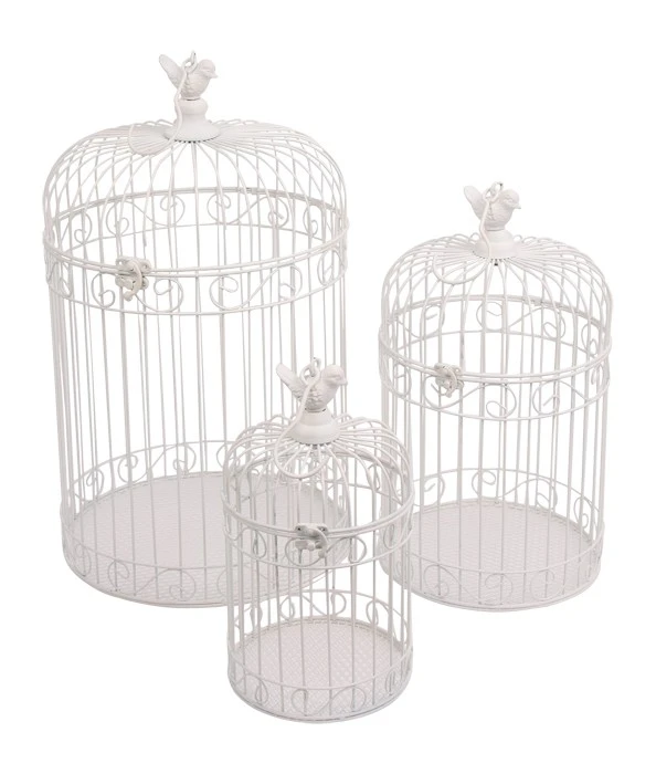 Käfige zum Hängen und Stellen sind wunderschöne Dekorationen aus weiß lackiertem Metall. Ob mit Modellen von farbenfrohen Singvögeln bestückt oder als Halterung für Pflanzenarrangements verwendet, werden hiermit tolle Akzente im Innenbereich, auf Terrassen und Balkonen gesetzt! Klappbare Kuppel mit Vogelfigur verziert, Verschlussbügel und Haken zum Aufhängen.